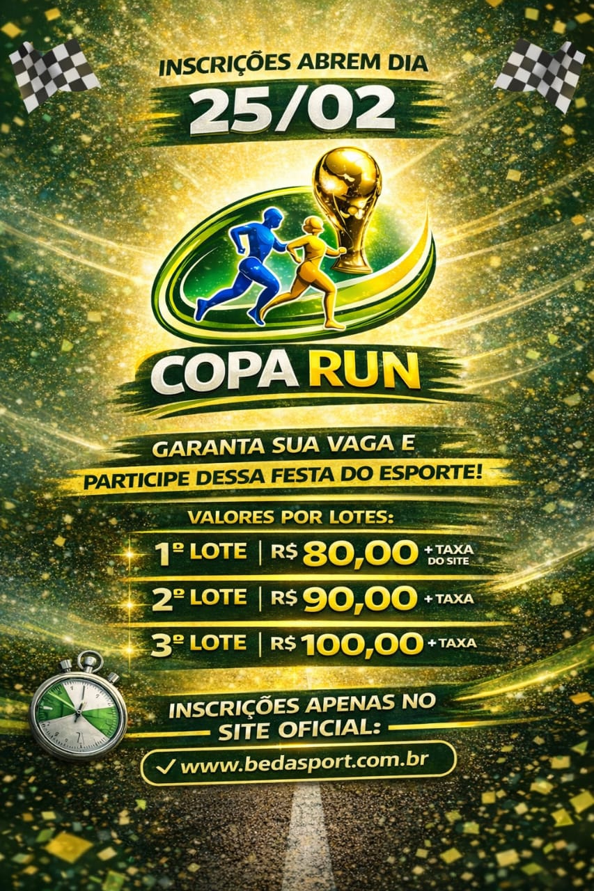 A Copa Run 2026 é um evento esportivo organizado pela CXC – Patrícia Sampaio, com o objetivo de reunir atletas de Colinas e região para celebrar a Copa do Mundo 2026, promovendo uma corrida marcada por alegria, união, parceria e entusiasmo.